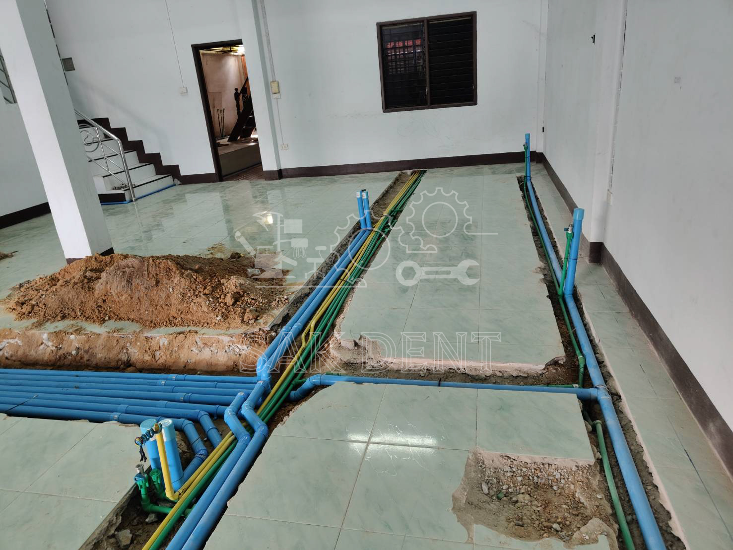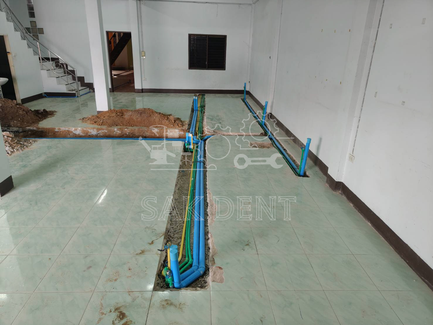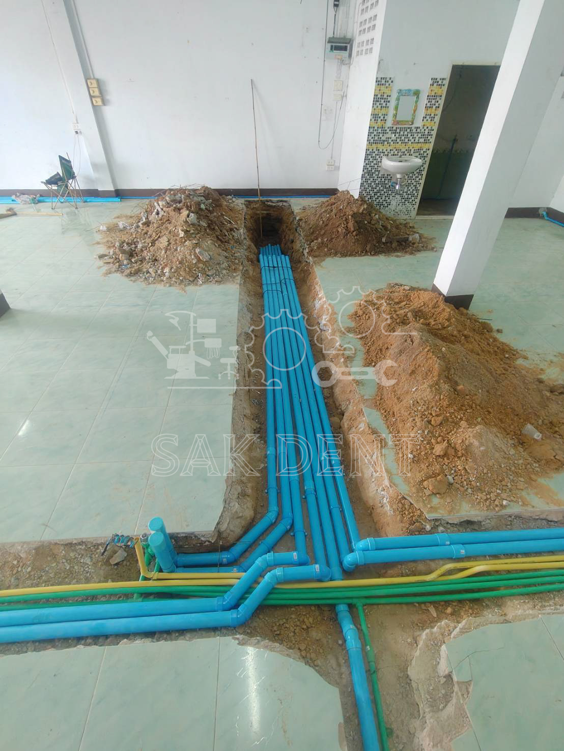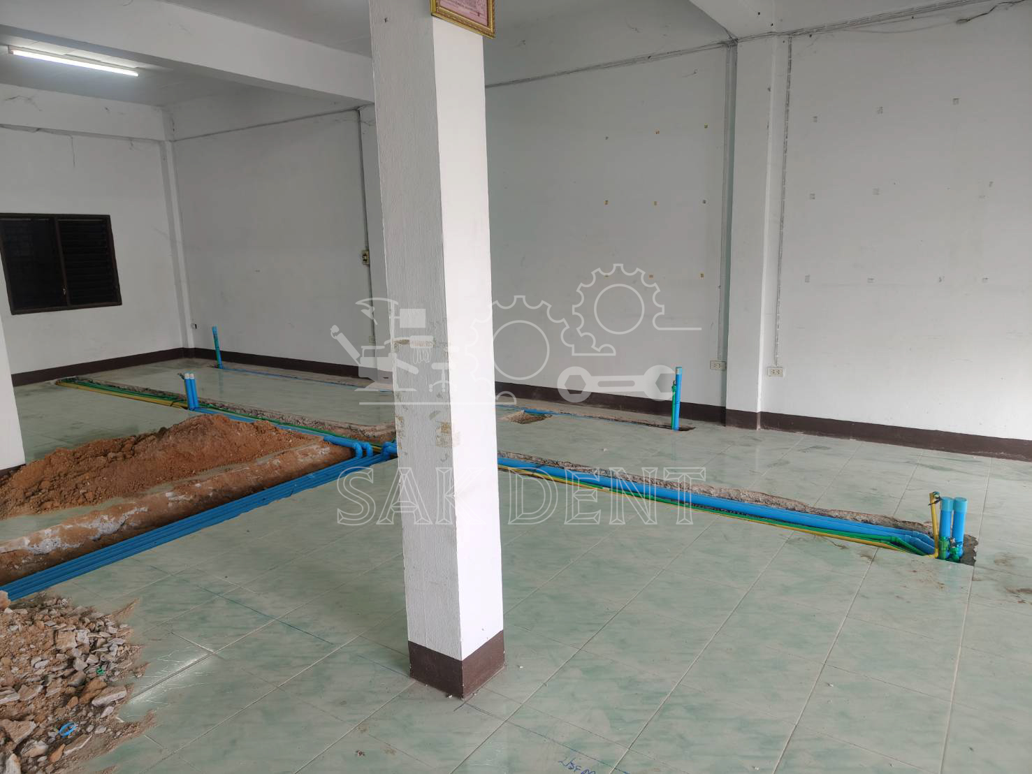งานกรีดพื้นวางระบบ unit. จำนวน 3 ห้องตรวจ คลินิกทันตกรรม อ.คูเมือง จ.บุรีรัมย์